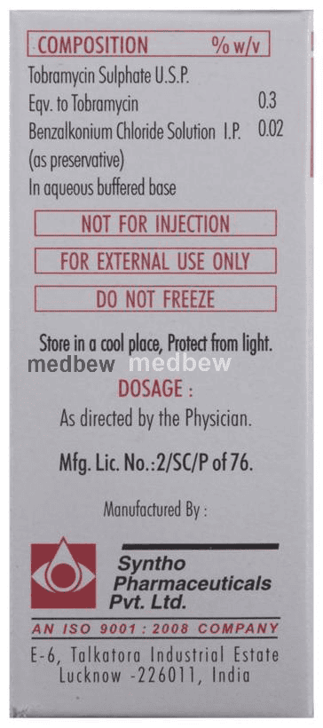 Obra Eye Drops stops the growth of bacteria and thereby helps to cure the underlying infection. Follow your doctor’s instructions precisely for administering this medicine. Wait for at least 5 minutes before applying any other eye medication. It should be used regularly at evenly spaced time intervals as prescribed by your doctor. Do not skip any doses and finish the full course of treatment even if you feel better. Stopping the medicine too early may lead to the infection returning or worsening.