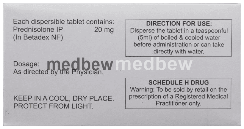 Omnacortil 20 Tablet DT is a corticosteroid. In addition to the many other benefits, it can be used in the treatment of severe allergic reactions. This medicine works by reducing the inflammation associated with allergies. It is a highly effective medicine. Take it in the exact dose and duration as prescribed by your doctor to get most benefit from it.