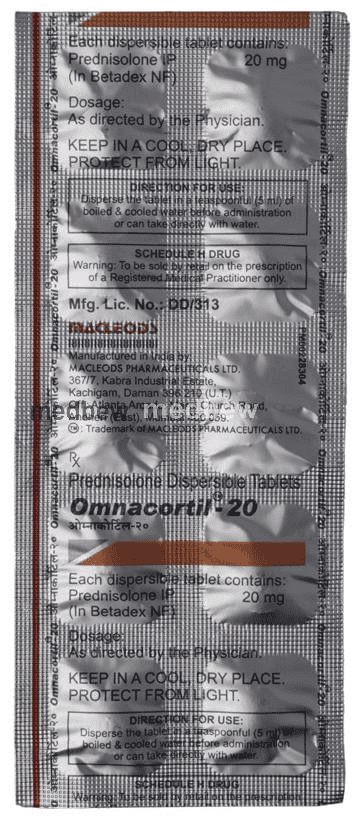 Take this medicine in the dose and duration as advised by your doctor. Dissolve it in a glass of water before taking it. Omnacortil 20 Tablet DT may be taken with or without food, but it is better to take it at a fixed time.