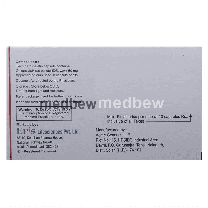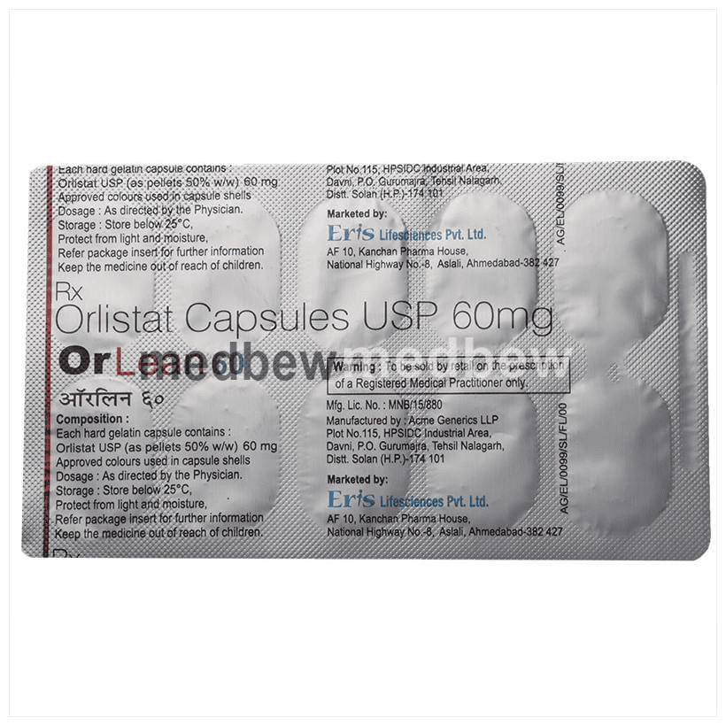 Orlean 60 Capsule is a medicine used in the treatment of obesity. It helps the body in blocking the absorption of fats from the small intestines and stomach.