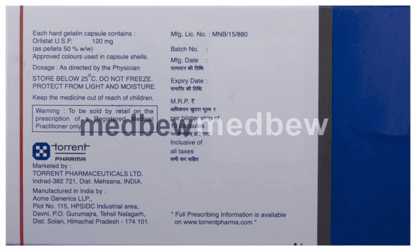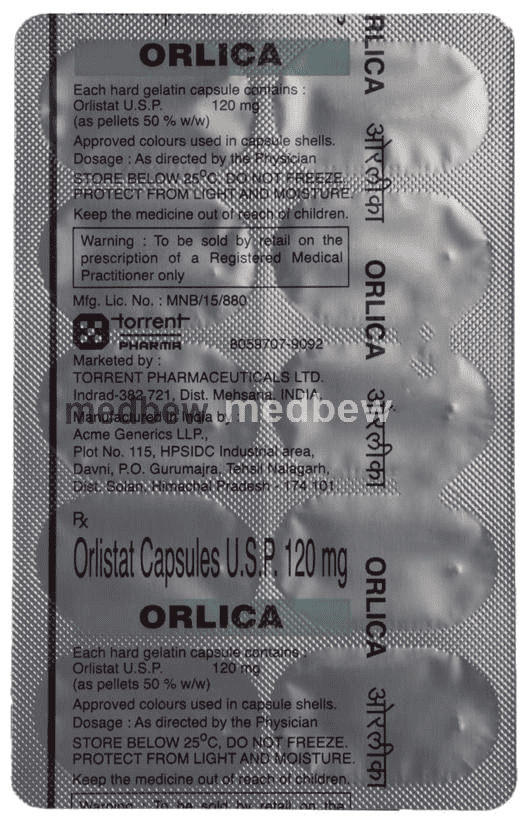 Orlica Capsule is a medicine used in the treatment of obesity. It helps the body in blocking the absorption of fats from the small intestines and stomach.