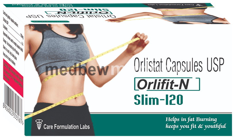 Orlifit-N-Slim 120 Capsule is a medicine used in the treatment of obesity. It helps the body in blocking the absorption of fats from the small intestines and stomach.