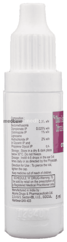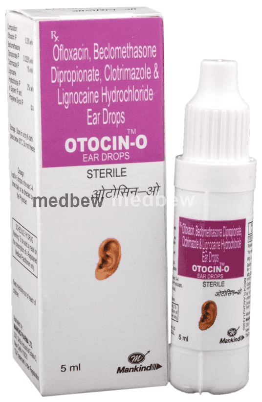 Otocin-O Ear Drop is a combination of four medicines: Lidocaine, Clotrimazole, Beclometasone and Ofloxacin. Lidocaine is a local anesthetic which works by blocking pain signals from the nerves to brain to decrease pain sensationin the ear. Clotrimazole is an antifungal which stops the growth of fungi while Ofloxacin is an antibiotic that prevents bacterial cells from dividing and repairing. This treats your ear infection. Beclometasone is a steroid. It blocks the production of certain chemical messengers (prostaglandins) that make the ear red, swollen and itchy.