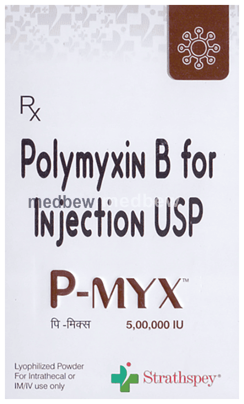 P-Myx 500000IU Injection is an antibiotic that fights bacteria. It is used to treat severe infections of the skin, soft tissues, heart and blood. It is commonly used to treat critically ill patients who are hospitalized.