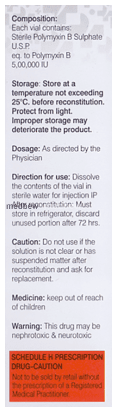 P-Myx 500000IU Injection is given under the supervision of a healthcare professional. You should get the injections at the same time each day to get the most benefit and you should keep on taking this medicine for as long as you are prescribed it, even if your symptoms quickly improve. If you stop taking it too early the infection may return or worsen.Some people may develop side effects like anaphylactic reaction, kidney damage, neurotoxicity, fever, or pain, redness, and swelling at the site of injection. These side effects are usually temporary and go away during treatment as your body adjusts to the medicine. Consult your doctor if these side effects bother you or will not go away.Before starting treatment with this medicine, you should tell your doctor if you are allergic to any antibiotic or have any liver or kidney problems. Pregnant women should consult their doctor before using it. Your doctor may get regular blood tests done to monitor kidney function.
