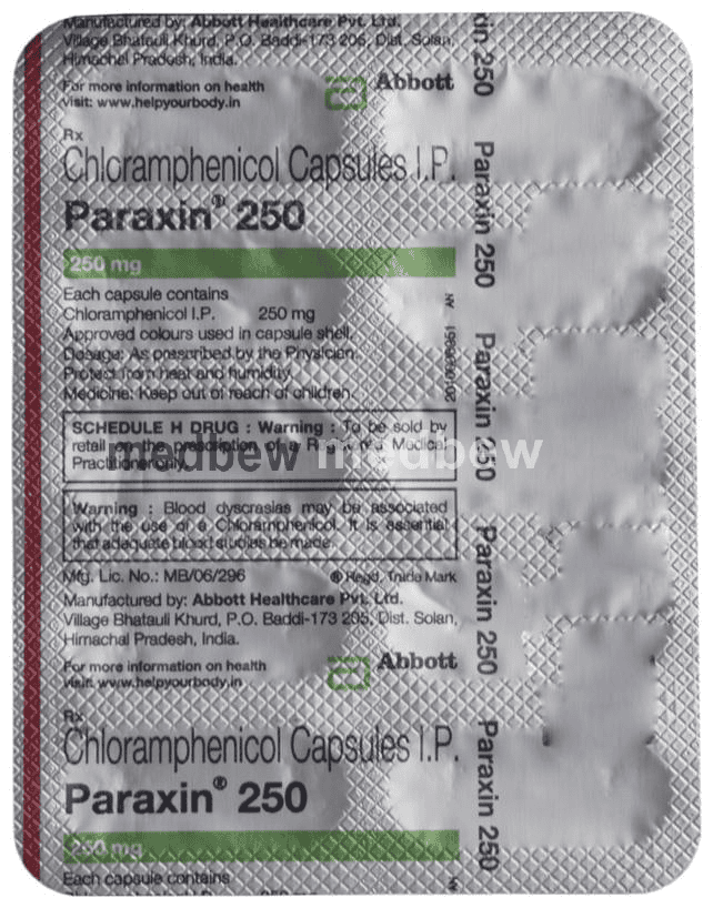 Paraxin 250 Capsule is an antibiotic that fights bacteria. It is used to treat certain types of serious infections caused by bacteria when other antibiotics cannot be used. It works by killing the bacteria that cause these problems. However, it will not treat a viral infection.