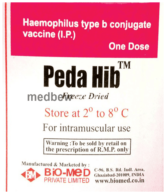 Peda Hib Powder for Injection is a prescription medicine. This combination of three vaccines is used to prevent Influenza (flu) and Tetanus. It stimulates the immune system to act against microorganisms to prevent such infections. These infections can occur in people of any age group.