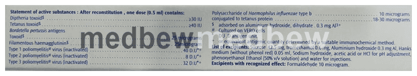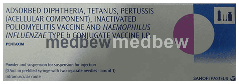 Pentaxim Vaccine is a prescription medicine having combination of medicines that is used in the treatment of diphtheria, influenza (flu), pertussis, tetanus, and polio. It helps in developing immunity. It protects the body against future infections.