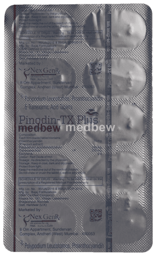 Pinodin-TX Plus Tablet is a prescription medicine used in the treatment of varicose veins. This medicine improves blood flow in the veins and restores its function.