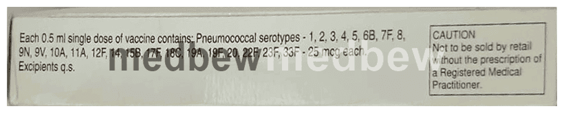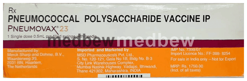 Pneumovax 23 Vaccine is used for prevention of diseases caused by pneumococcal bacteria such as pneumonia, meningitis, ear infections, and blood infections.