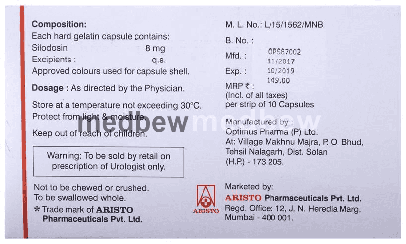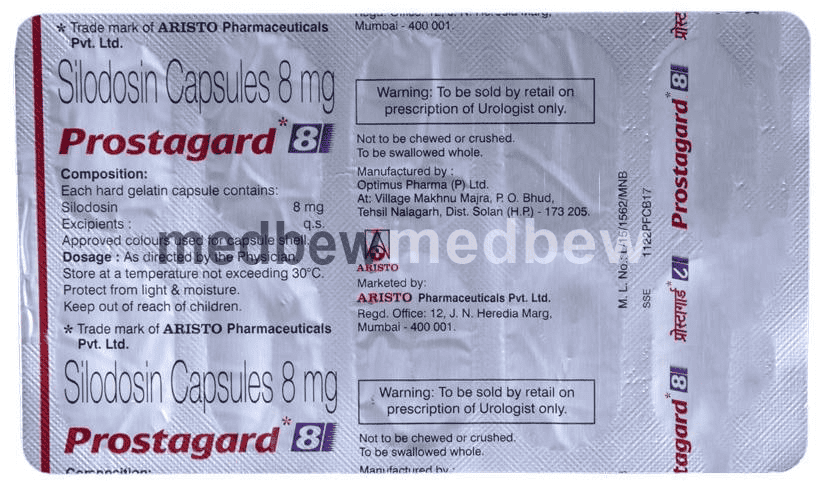 Prostagard 8 Capsule is an alpha adrenergic antagonist that is used in the treatment of benign prostatic hyperplasia. It helps to relieve symptoms like difficulty in passing urine. However, it does not decrease the size of the prostate.