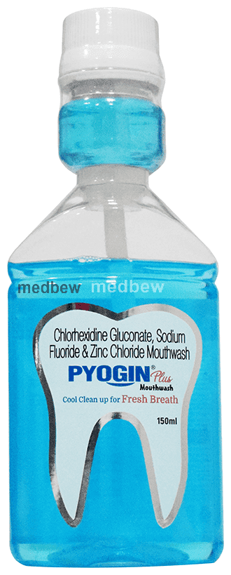 Pyogin Plus Mouth Wash is a combination of three medicines: Chlorhexidine Gluconate, Sodium Fluoride and Zinc Chloride. Chlorhexidine Gluconate is an antiseptic. It works by binding to the surface of teeth, inner cheeks and gums. This kills the infectious microorganisms that cause gum disease, ulcers and other mouth infections. Sodium Fluoride works by making the teeth stronger and preventing decay (cavity) caused by bacteria. Zinc Chloride has antiseptic and astringent action.