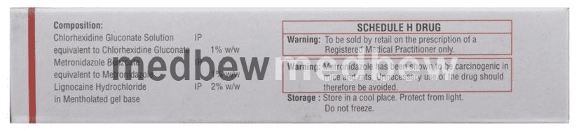 Composition Lidocaine (2% w/w) + Chlorhexidine Gluconate (1% w/w) + Metronidazole (1% w/w)