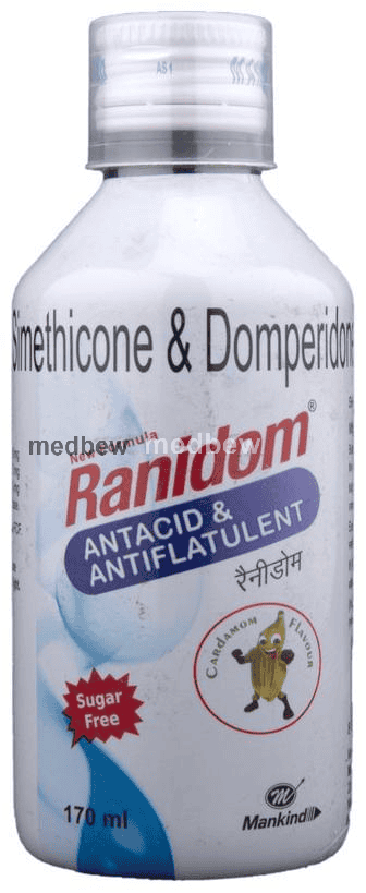Ranidom Suspension is a prescription medicine that is used in the treatment of acidity, stomach ulcer and bloating. It helps in relieving the symptoms of acidity and ulcers such as nausea, stomach pain or irritation. It also neutralizes excessive acid in the stomach and helps in easy passage of gas.