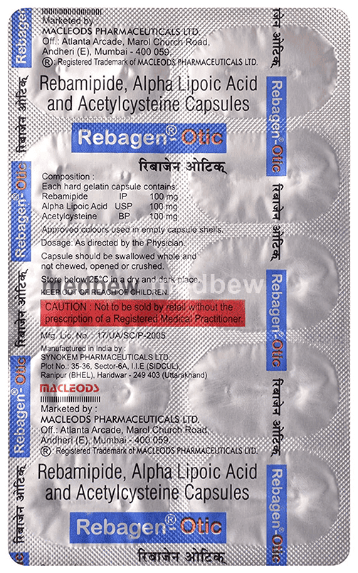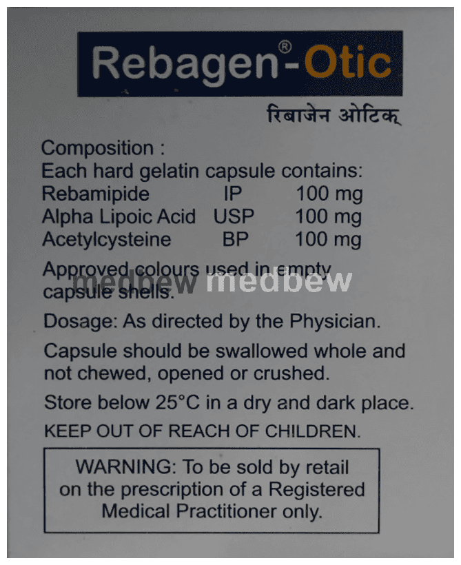 Rebagen-Otic Capsule is a prescription medicine used to treat age-related hearing loss (presbycusis). It works by preventing cell damage and removing toxic substances. It also prevents further hearing loss.