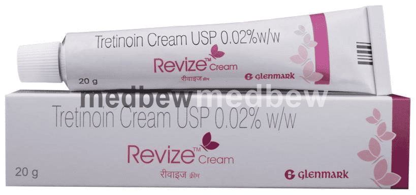 Revize Cream is a form of vitamin A that is used to treat acne which appears as spots or pimples on your face, chest, or back. It also helps to smooth rough facial skin and to reduce fine wrinkles on the skin.