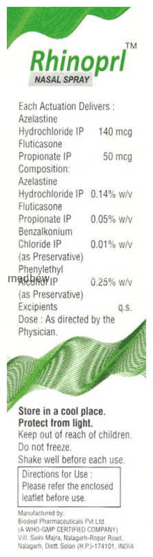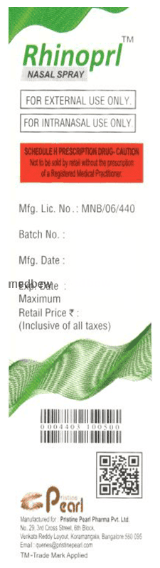 Rhinoprl Nasal Spray is a combination medicine used in the treatment of allergy symptoms such as runny nose, stuffy nose, sneezing, watery eyes, and congestion or stuffiness.