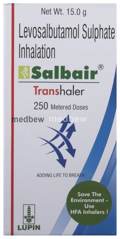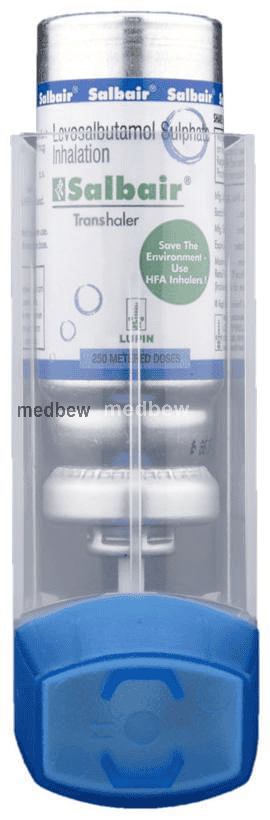 Salbair 50mcg Transhaler is a belongs to a group of medicines called fast-acting bronchodilators or relievers. It is used to treat the symptoms of asthma and chronic obstructive pulmonary disease (COPD) such as coughing, wheezing, and feeling short of breath.