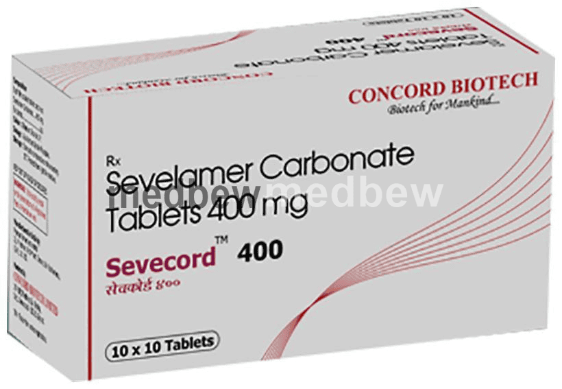 Sevecord 400 Tablet is used to treat increased phosphate levels in the blood. It is used in patients who are on dialysis due to severe kidney disease. It inhibits the absorption of phosphate from the intestine and lowers the phosphate levels in the blood.