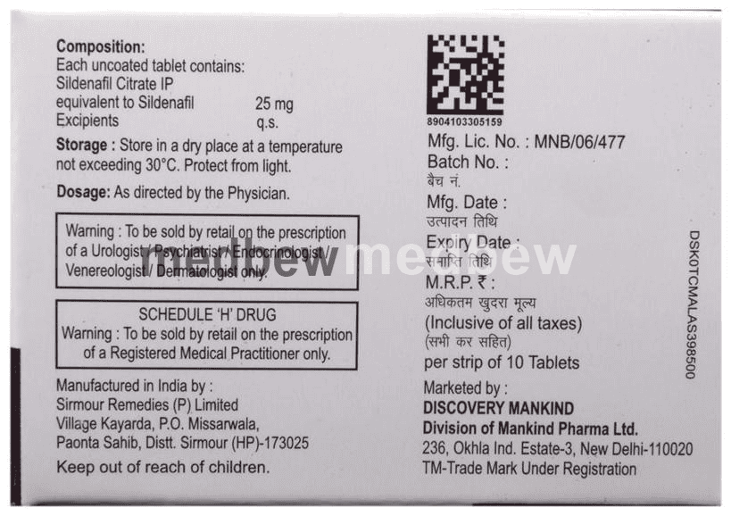 Composition Sildenafil (25mg)