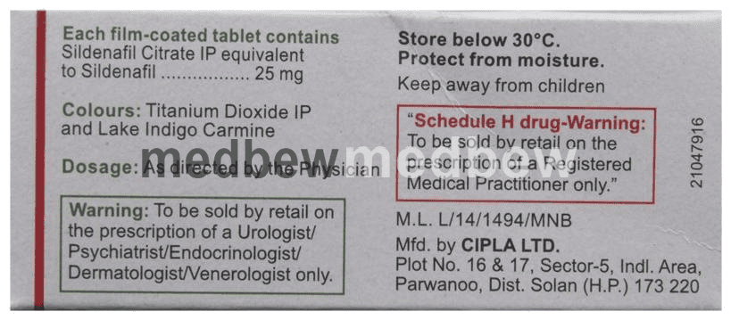 Suhagra 25 Tablet is a prescription medicine and should only be taken for the duration that is advised by your doctor.