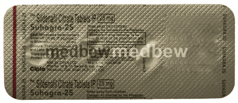 Suhagra 25 Tablet is a phosphodiesterase (PDE-5) inhibitor. It works by increasing blood flow to the penis by relaxing the muscles in penile blood vessels.