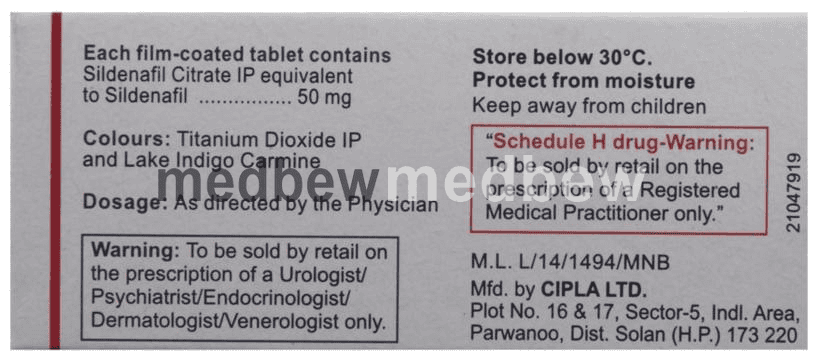Take Suhagra 50 Tablet about 1 hour before you plan to have sex. Swallow the tablet whole with a glass of water. Inform your doctor if you feel the effect of Suhagra 50 Tablet is too strong or too weak.