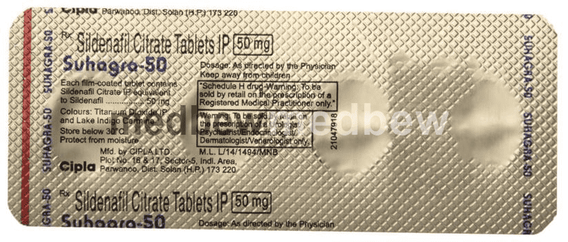 Suhagra 50 Tablet is a prescription medicine used to treat erectile dysfunction (impotence) in men. It works by increasing blood flow to the penis. This helps men to get or maintain an erection. It belongs to a group of medicines known as phosphodiesterase type 5 (PDE 5) inhibitors.