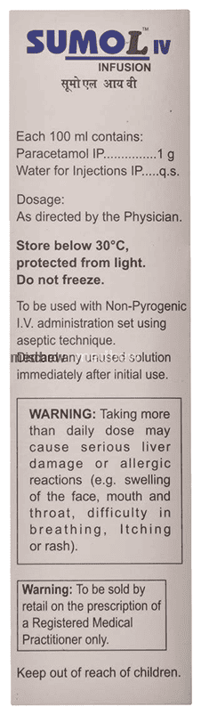 Sumo L IV Infusion helps in relieving moderate pain and reducing fever. It effectively alleviates pain and reduces fever for the short-term in cases following surgery or in cases where oral administration is not possible.
