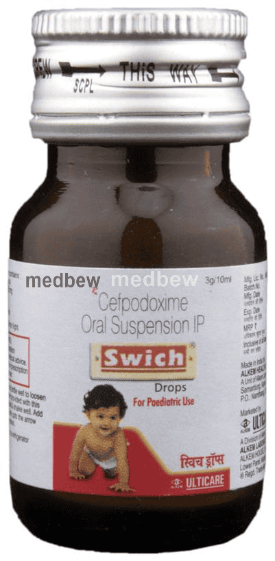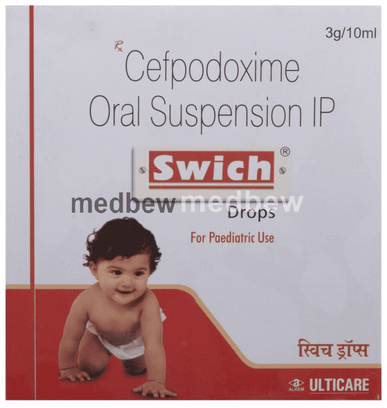 Swich Drops is an antibiotic medicine used to treat bacterial infections in your body. It is effective in infections of the lungs (eg. pneumonia), urinary tract, ear, nasal sinus, throat, and skin. It kills bacteria, which helps to improve your symptoms and cure the infection.