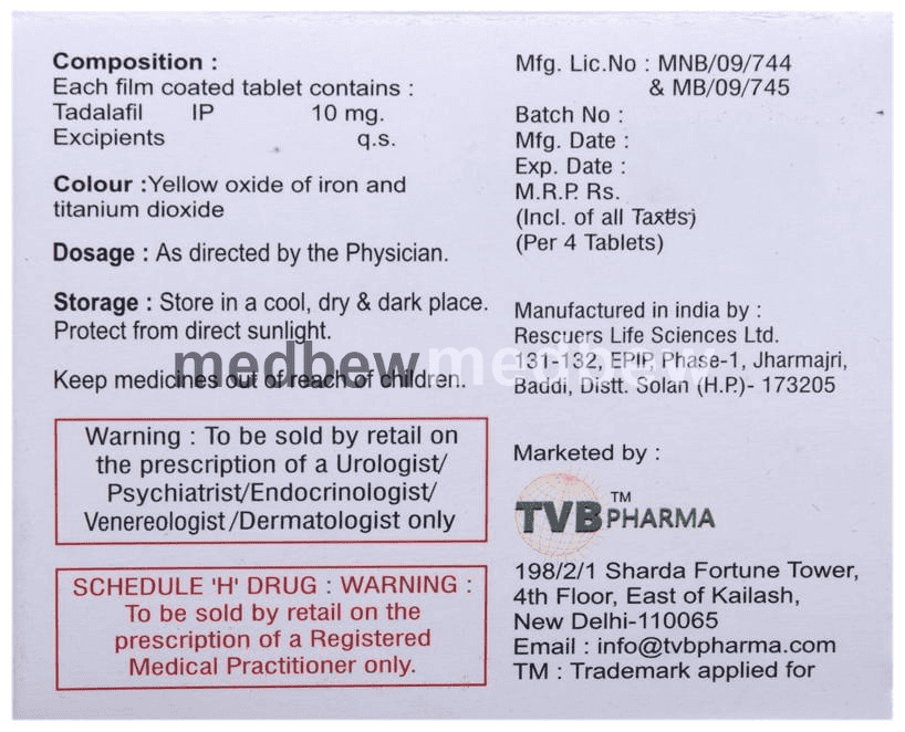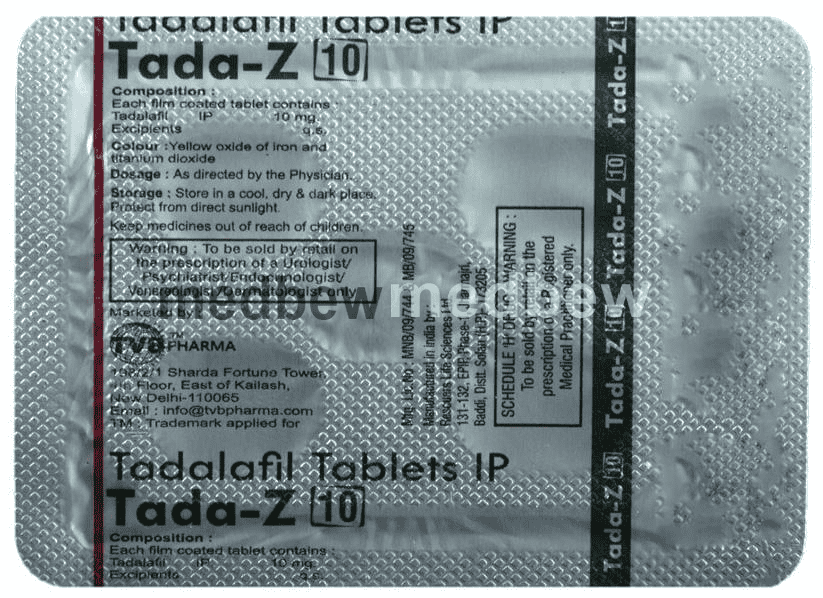 Take this medicine in the dose and duration as advised by your doctor. Swallow it as a whole. Do not chew, crush or break it. Tada-Z 10 Tablet may be taken with or without food, but it is better to take it at a fixed time.