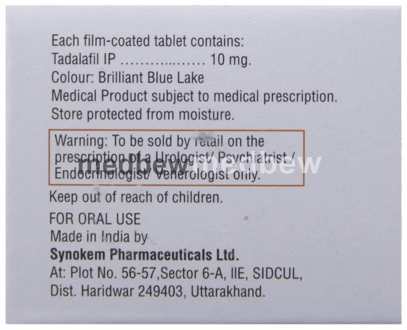 Tadact 10 Tablet is a phosphodiesterase (PDE-5) inhibitor. It works in erectile dysfunction by increasing blood flow to the penis by relaxing the muscles in penile blood vessels.