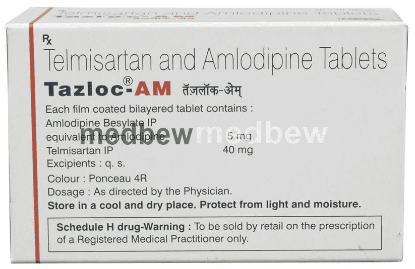 Tazloc-AM Tablet contains two medicines, both of which help to control high blood pressure. It lowers the blood pressure by relaxing the blood vessels and making it easier for your heart to pump blood around your body. This will reduce your risk of having a heart attack or a stroke.