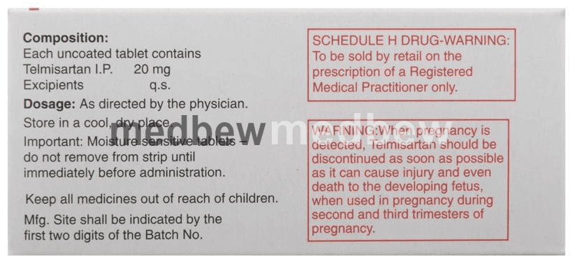 Home » ANTI HYPERTENSIVE » Telma 20 Tablet