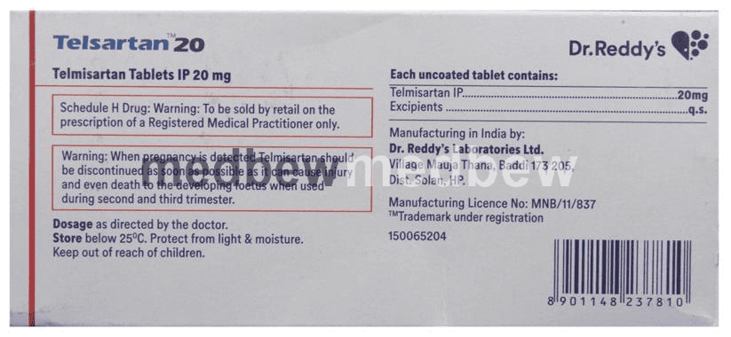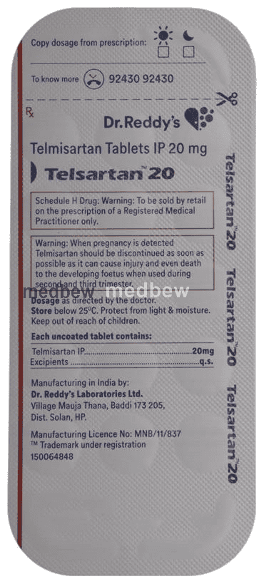 Home » ANTI HYPERTENSIVE » Telsartan 20 Tablet