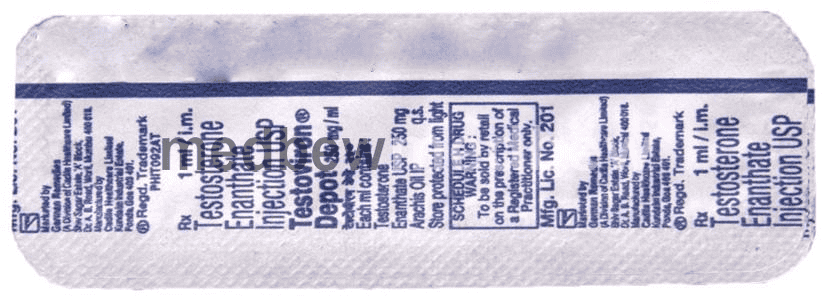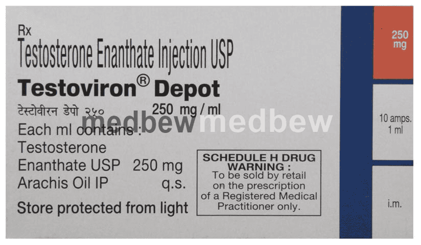 Testoviron Depot 250 Injection is similar to the natural male hormone, testosterone. It works by replenishing the deficient testosterone levels in adult men. Lack of testosterone may cause various health problems including impotence, infertility, low sex drive, tiredness, depressive mood and bone loss.