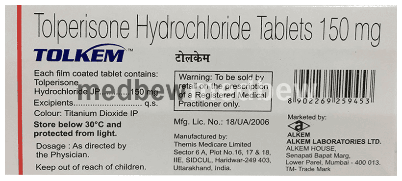 Tolkem Tablet is a muscle relaxer. It provides relief from the discomfort associated with acute, painful musculoskeletal conditions such as rigidity, tension, stiffness, and muscle spasms.