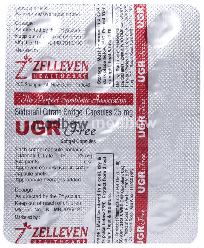 UGR Free Softgel Capsule is a phosphodiesterase (PDE-5) inhibitor. It works by increasing blood flow to the penis by relaxing the muscles in penile blood vessels.