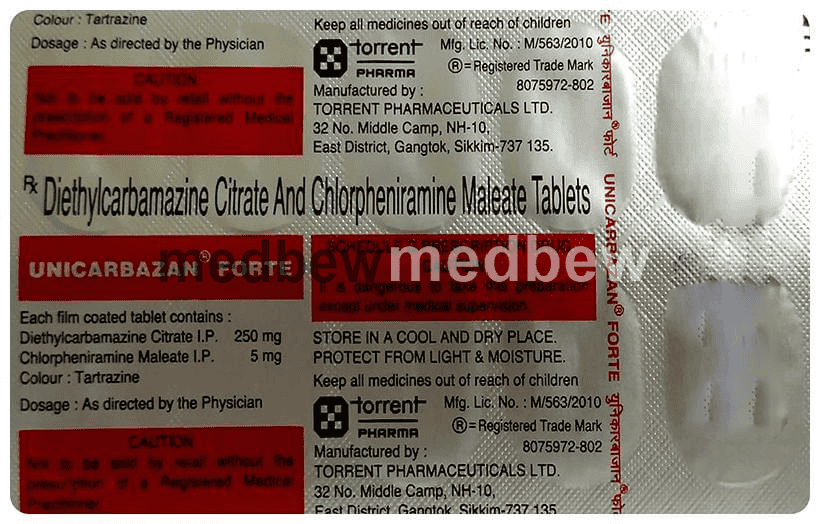 Unicarbazan Forte Tablet is a combination of two medicines used to treat parasites and worm infestations in the body. It helps to treat the infection by inhibiting the growth of the parasites.