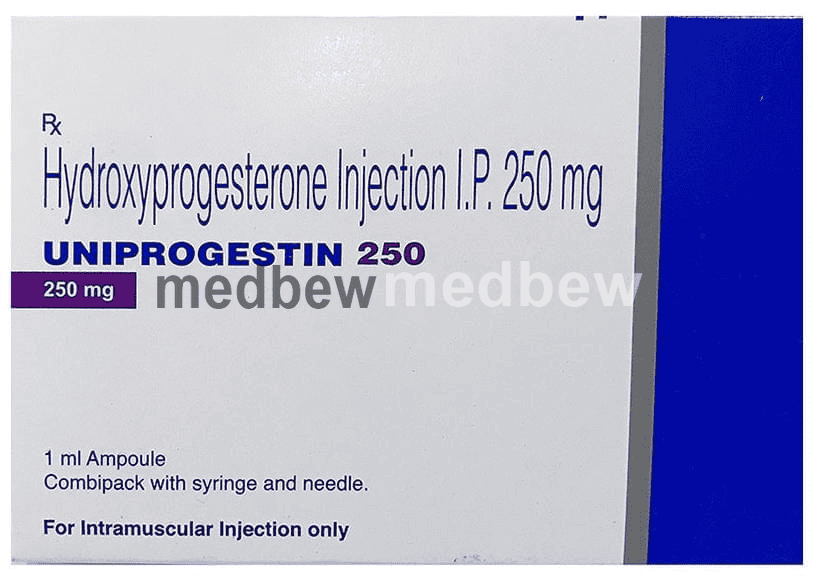 Uniprogestin 250 Injection is used to prevent premature labor in pregt women in order to reduce the risk of giving birth too early (preterm birth). It prevents miscarriage and lower the risk of premature birth in women who have had one premature delivery in the past.