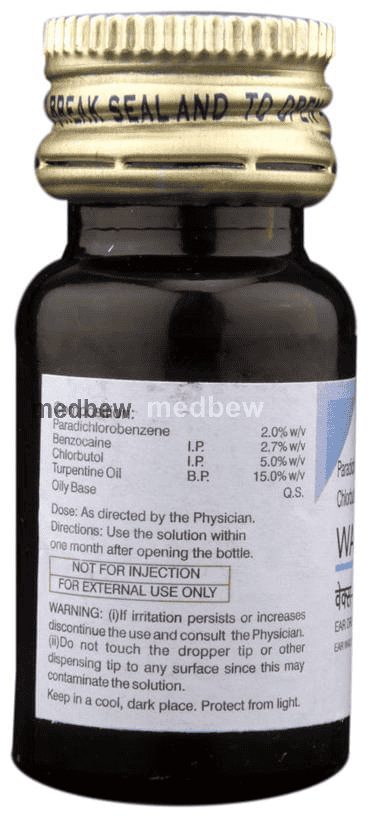 Wax-Off Ear Drop is a medicine used to treat pain in the ear. It helps in dissolving the ear wax. This way it relieves pain caused by hardened wax inside the ear.