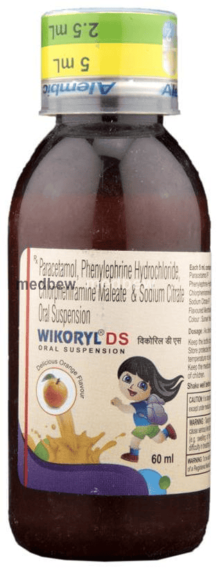 Wikoryl DS Syrup Orange is commonly prescribed in children to treat symptoms such as runny nose, cough, sneezing, watery eyes, sore throat, body ache, and fever. These symptoms are usually associated with common cold, hay fever (allergic rhinitis), and other respiratory tract conditions.