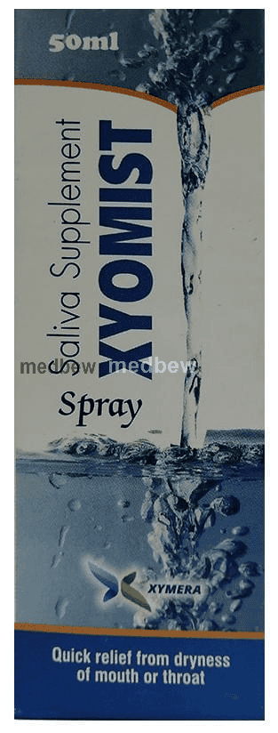 Xyomist Mouth Spray is a combination medicine used in the treatment of dry mouth. It works by increasing the viscosity of the saliva that helps to lubricate the mouth.