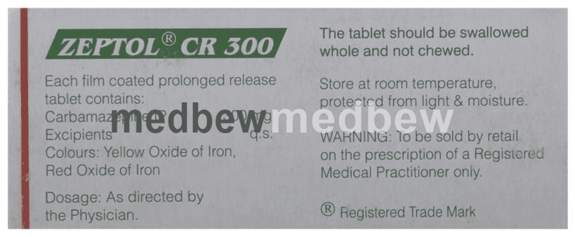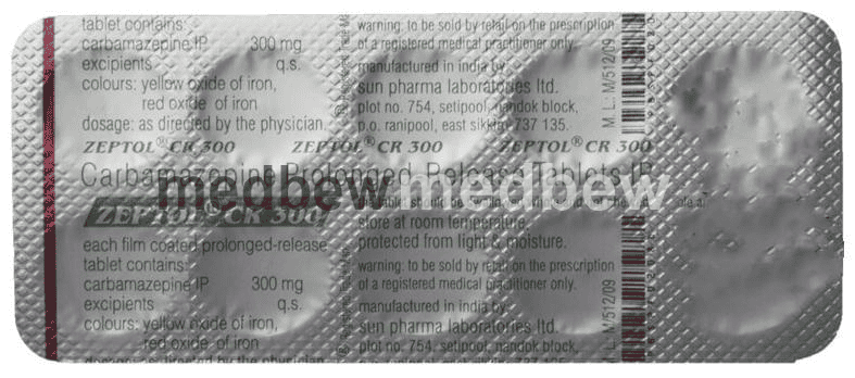 Zeptol CR 300 Tablet is an anti-epileptic medicine used to treat epilepsy. It helps prevent certain types of seizures (fits). It is also prescribed for a painful condition of the face, head, and neck known as trigeminal neuralgia and diabetes-related nerve pain (diabetic neuropathy).