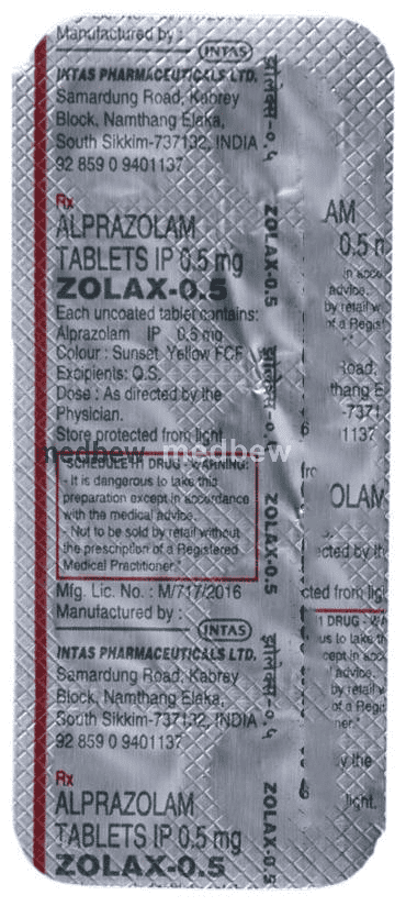 Zolax 0.5 Tablet belongs to a class of medicines known as benzodiazepines. It is used to treat anxiety. It alters brain activity, calms it, and provides relief from panic attacks by relaxing the nerves.